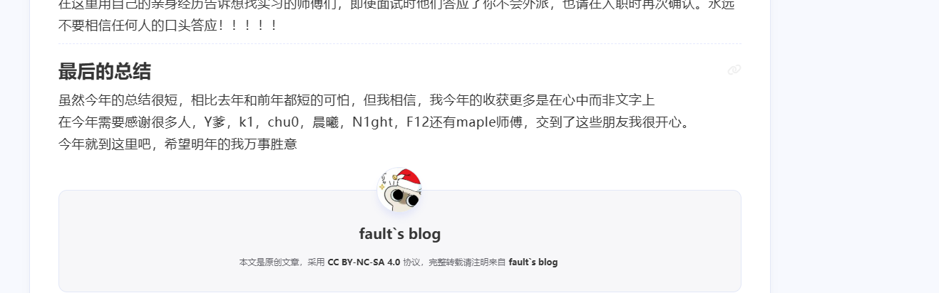 可是到了大二,认识更多的师傅后发现自己的学习进度其实慢到令人发指,同级的师傅已经在看Java的时候我也在看,同级的师傅已经自己出Java题目了我还在调cc链。容我在此处找个借口,或许是学校有太多事要操心,也或许是那段时间对人性没有掌握太多,校内更多是在被压榨了一学期的劳动力后堪堪收获一千元。大二上学期的我面临着实验室的分崩离析,我看不清局面,更摸不到人心。唯一能做的就是给后面看得清局面的我以更多抉择,于是本来该学习的我被这些破烂事缠的不可脱身。每日坐在电脑前就是想今年是不是又要挂科,实验室会不会就此断代,和那位的合作还有必要继续么。